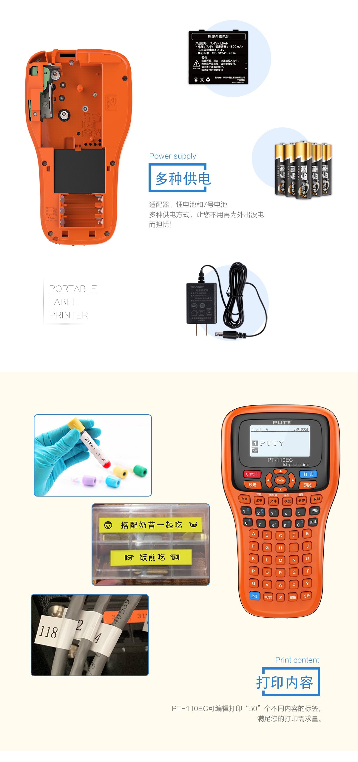 ☑︎兼容性好,多种供电 ☑︎ 多标签一键打印