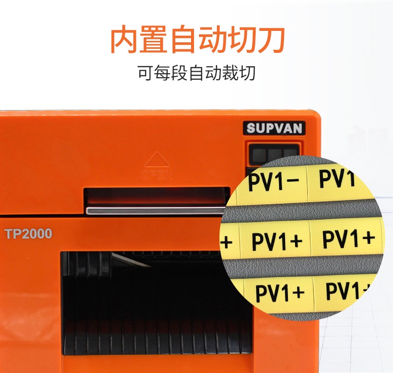 硕方热缩管打印机TP2000专注大口径热缩管打字标识而生,清晰度300DPI,热缩管尺寸宽泛,φ7到φ30均可,打印速度快,每秒可打印35mm,操作简单,支持电脑和蓝牙连接手机两种方式操作,自动半切,可批量打印热缩套管内容,长久标识!